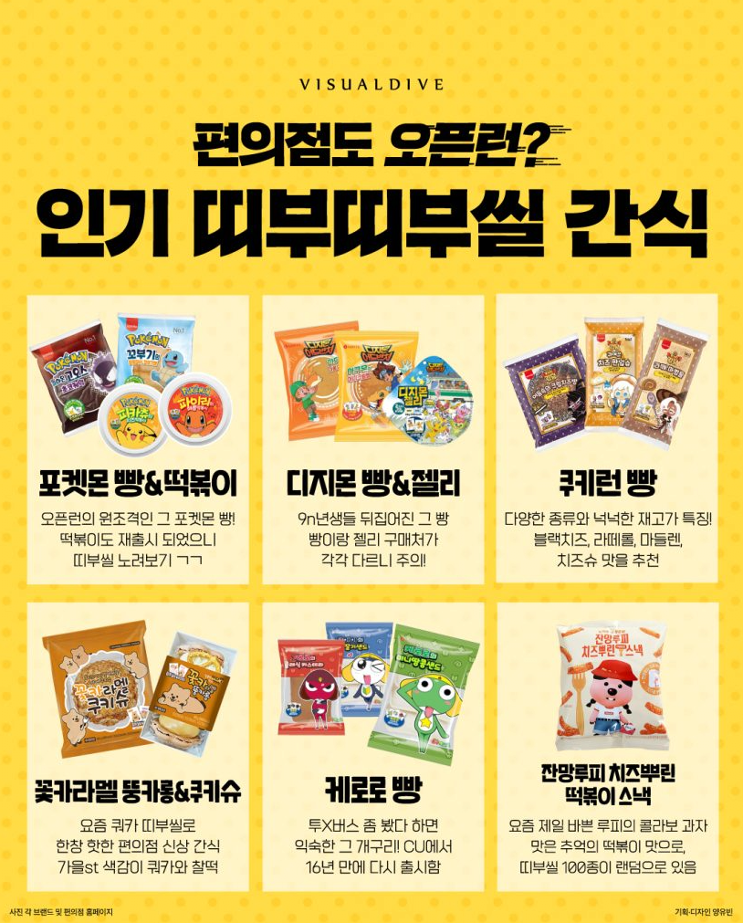 띠부띠부씰(띠었다 붙였다 할 수 있다고 해서 띠부띠부씰) 열풍을 불게 한 포켓몬 빵은 편의점에서 없어서 못팔 정도의 인기를구가하였고 이는 케로로빵, 짱구과자, 메이플 스토리, 디지몬 등 블루오션은 가장 빠르게 레드오션화 시키는 우리나라답게캐릭터 IP를 활용하여 띠부띠부씰 열풍을 불러오게 하였습니다.