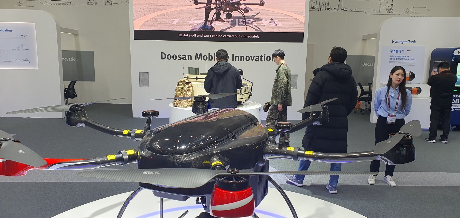 두산 모빌리티 이노베이션은 역시 수소 드론에 주력하는데 확실히 일반 드론과 수소 드론은 육안으로도 차이가 났습니다.