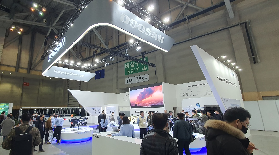 입구에 lig넥스원이 있다면 안쪽에는 두산이 부스를 굉장히 크게 해놓고 관람객들을 맞이하고 있었습니다.