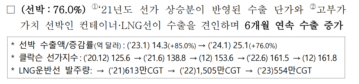 선반은 컨테이너선과 LNG선이 수출을 견인했다.