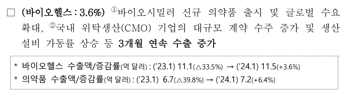 바이오시밀러와 CMO의 대규모 계약 수주 증가가 상승의 요인이었다. 역시나 바이오 헬스케어도 수출로 돈버는 기업들이 두각을 나타낸다.