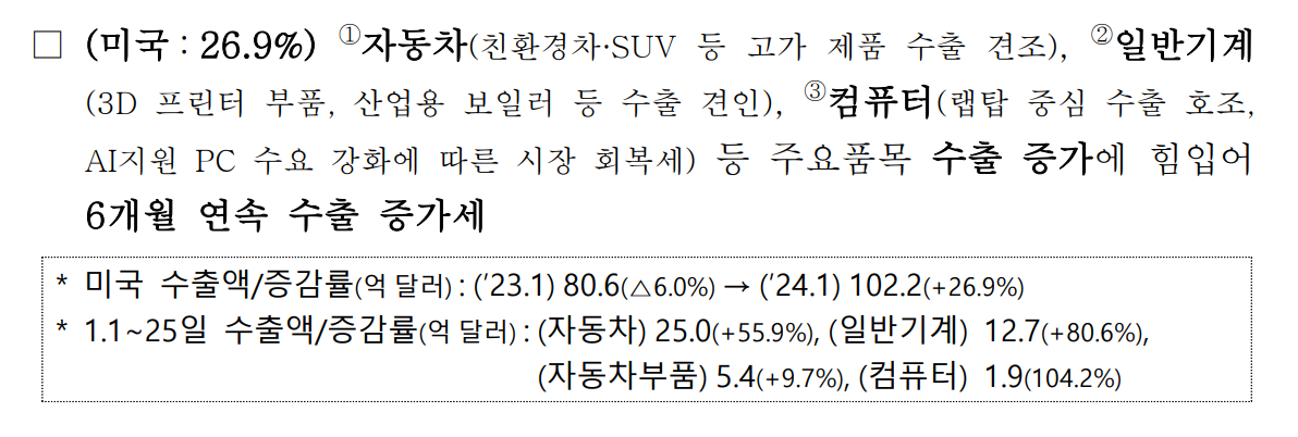 수요 감소가 나타나기는 하지만 미국 현지 공장 내 생산 모델 확대에 따른 수출 증가로 1월 수출 증가를 달성했다. 자동차는 그럭저럭 괜찮을거 같은데, 자동차 부품은 영 애매하다.