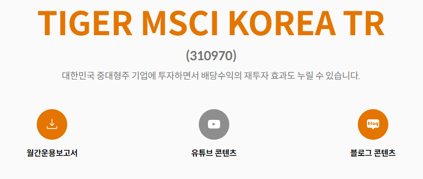 미래에셋 자산운용에서 상장한 TR ETF로 MSCI 한국 지수를 추종한다.
